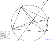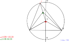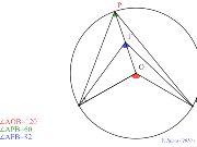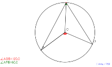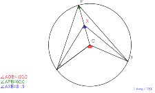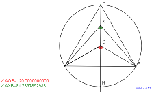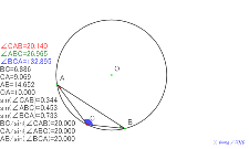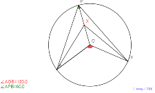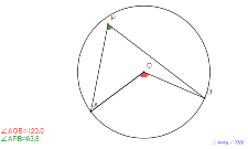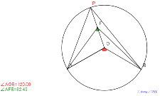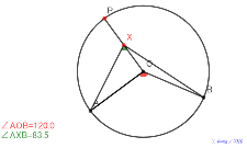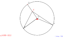 | 00896-∠AXBを測定している | 00895-中点Xを取る | 00894- 2個二等辺三角形円周角60と中心角120で点pは自由 | 00893- 中心角120、どこで円周角は60に | 00892- 円周角60と中心角120で点pは自由 |