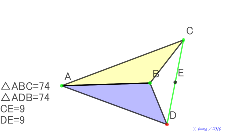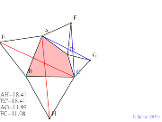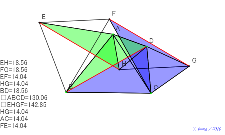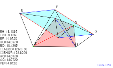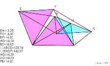 | 00938-EF=AC=HC合同と回転 | 00937-EF=BD=FG合同と回転 | 00936- 対辺の長さがそれぞれ同じ条件 | 00935- 証明出来た!!四角形上に互い違いに正三角形で、平行四辺形が出 来る | 00934- 勝手な四角形の上に4つの正三角形で平行四辺形ができる |