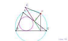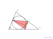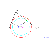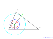 00747- 内接円上の点からの垂線の足三角形の外心の軌跡 | 00746- 内接円上の点からの垂心三角形の重心の軌跡 | 00745- 内接円上の点からの距離の和?? | 00744- 内接円上の点と各頂点の距離の和?? | 00743- シムダン線、内接円上に点を乗せる? |
