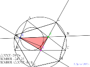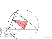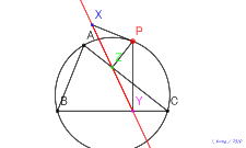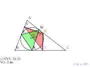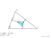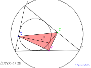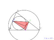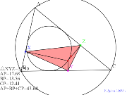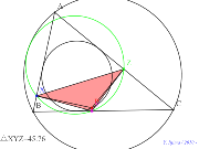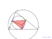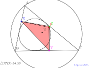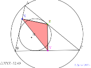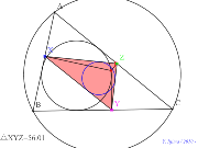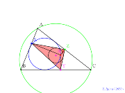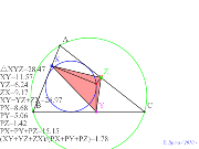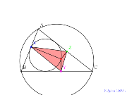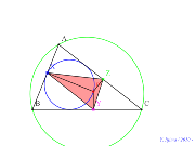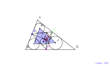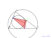 00752- シムダン線、内接円上。垂線三角形とできる六角形の面積比駄目 | 00751- シムダン線の軌跡、点を外接円上を動かす | 00750- 内接円上の点からの垂線の足三角形の内接円の軌跡 | 00749- 内接円上の点からの垂線の足三角形の外接円の軌跡 | 00748- 内接円上の点からの垂線の足三角形の内心の軌跡 |