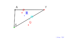 00562- 外分点3_1重心固定点A、P。動点X_Y_と内心 | 00561- 重心固定点A、P。動点X_Y_と内心 | 00560- 垂線の足で解決固定点A、P。動点X_Yと内心 | 00559- 固定点A、P。動点X_Yと内心 | 00558- 半径APの円と固定点A、P動点X、YとΔAXYの外心 |