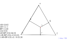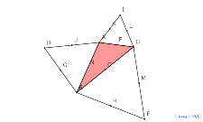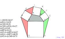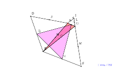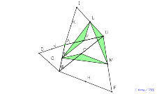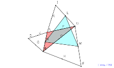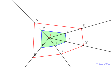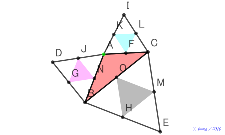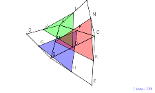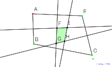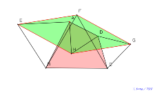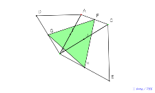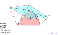 01369- 附属5番目(地曵定理)を四角形に拡張 | 01368- 平行四辺形を色つきに勝手な四角形の上に4つの正三角形で平行四 辺形ができる | 01367- 勝手な四角形の上に4つの正三角形で平行四辺形ができる | 01366- 四0117角形上に互い違いに正三角形で、平行四辺形を赤くする | 01365- 証明2(3本の垂線の足から、正三角形の一辺の長さを計算する |
