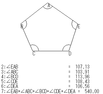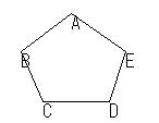 | 次のような五角形がある。この五角形の各頂点 A,B,C,D,Eのいくつかを変形により移動させる。この五角形を図のような星形五角形に変えることはできるだろうか。 また,完成した星形五角形の各頂角の和は何度になるのだろう。 | |||