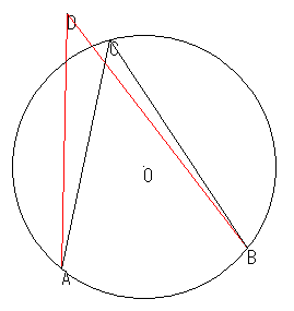上図において,点Cを円周上に固定し,新たに任意の点Dをとる。このとき,点Dによってできる∠ADBは,点Dの位置によって,∠ACBとどのような関係になるだろうか。