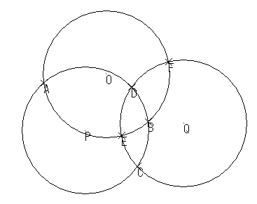 | 半径の等しい3つの円の中心を,それぞれO,P,Qとする。