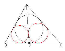 | 三角形ABCの内接円と,辺BCとの交点をDとおく。三角形ABDと三角形ACDの内接円はどんな関係にあるか。