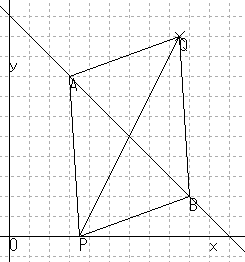 点Pがx軸上で原点Oと点Cの相田を動き,点Qは四角形APBQが平行四辺形になるように動く。次の問いに答えなさい。