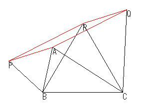 | ΔABCのAB,ACを一辺にして三角形の外側に正三角形PAB,QACをつくり,またBCを一辺として頂点Aと同じ側に正三角形RBCをつくると,四角形PAQRはどんな四角形になるか。