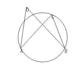 | 点Dが点Cを含む弧ABの側に動かしたとき,点Dが円の内部にある時と外部にある時とでは,∠ADBの大きさは∠ACBの大きさと比較してどのようになるか。