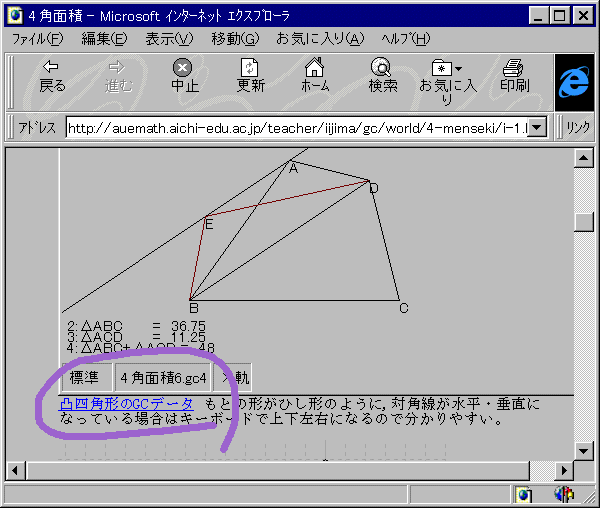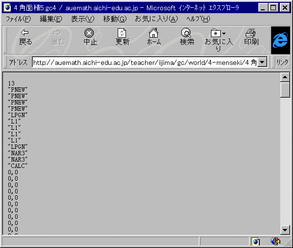 まず,ブラウザを起動します。ここでは,Internet Explorer を使います。Navigatorでもうまくできるのかもしれませんが,現在までのところ,うまくいっていません。WWWサーバーでのMIMEタイプ等の設定が必要なのかもしれません。