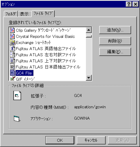 そして,「gc4」という拡張子に対して,Geometric Constructor / Win を起動する(open)ように設定して,「ok」を押します。