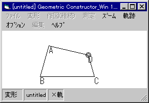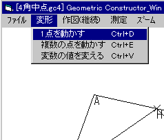 しかし,変形という基本的な操作のたびに,この2段階をしなければならないというのは,思考を妨げると言えます。実際,多くの作図ツールでは,画面の図は,標準的な状態で,「変形可能」な状態です。マウスを近づけると,「この点を動かしたいのか」というスタンバイ状態になり,マウスを押してドラッグすると,その点を動かすということになります。