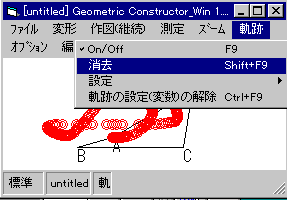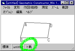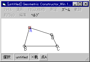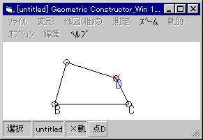 | 「A」を動かしたいときはもう一度クリックでいいが,たとえば「D」など,別の点を動かしたいときには,「D」のそばでクリックする。すると,右図のようになり,「変形する点は D でいいか」と尋ねている状態になる。 |
