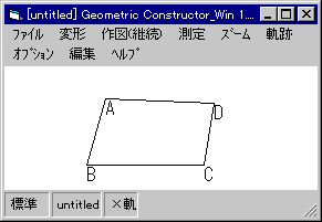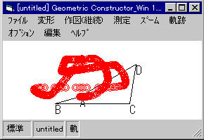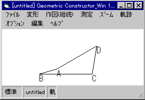 | マウスを動かして左クリックすると,点 D がそこに移動する。 矢印キー(←↑↓→)を押しても移動する。 マウスを押したまま動かすと,ドラッグする感じになる。 |