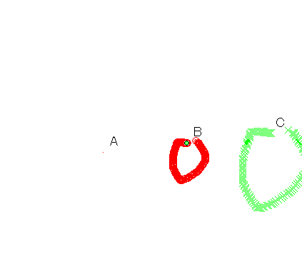 B(中心)を動かしたときのAとCの軌跡に注目してみる。