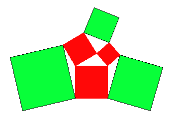 その外側に作った3つの正方形(緑の正方形)の面積の和