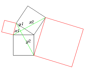 つまり, 上の図のように補助線を追加するとこれらは直交し,交点までの長さをそれぞれ x1, x2, y1, y2とすると,
