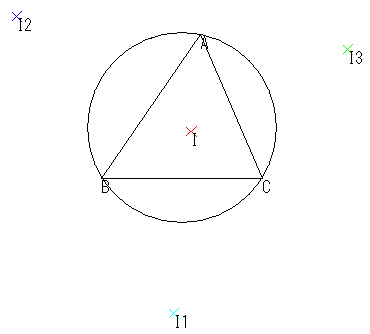 うーん,これは,傍心の問題というよりも,GCの機能が低いので,こんなしょーもない現象になるのかもしれませんね。では,3つの点の集まりとして考える方がいいかもしれません。