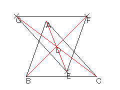 三角形 ABC がある。点 D に関して A,B,C に点対称な点をそれぞれ E,F,G とし,それらを結んで三角形 EFG を作る。