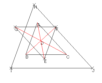 三角形 ABC がある。A,B,C に関して 点 D と点対称な点をそれぞれ E,F,G とし,それらを結んで三角形 EFG を作る。