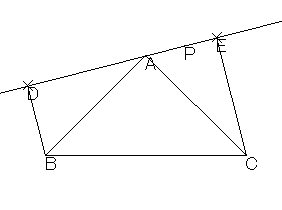 頂点 A を通る直線があり, B, C から直線への垂線の足をそれぞれ D,E とする。