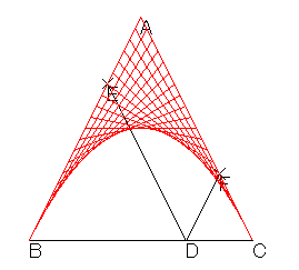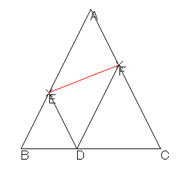二等辺三角形ABCの底辺 BC 上に点 D を取る。 そして,点 D を通り, AC,AB に平行な直線を引き,それぞれの直線と線分 AB,AC との交点を E,F とする。