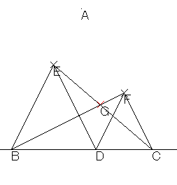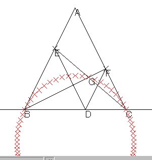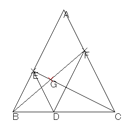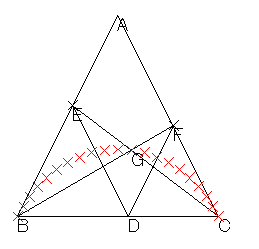 二等辺三角形ABCの底辺 BC 上に点 D を取る。 そして,点 D を通り, AC,AB に平行な直線を引き,それぞれの直線と線分 AB,AC との交点を E,F とする。