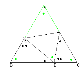 ΔABCが正三角形の場合,Dがどのような場所にあっても,下の二つの三角形が相似になります。