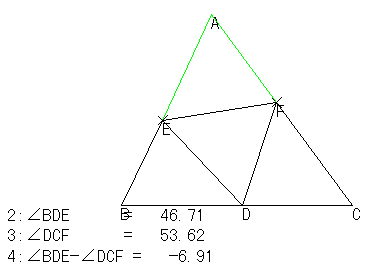 点 D の位置を固定しておいて,点 A を移動し,ΔEDB,ΔFBCが相似になる位置を求めたい。