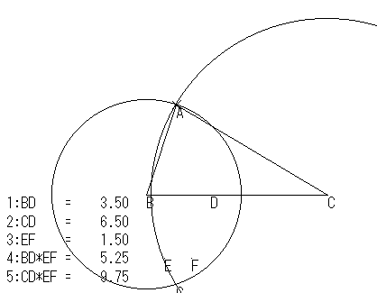 BD,CDを測定しておいて,変数としての k を変化させる / あるいは,変化させてその長さを使うための EF を用意して,それを使うというようなことをすれば,長さとしての AB, AC が決まるので,二つの円を作図し,その交点として A を作ることができます。