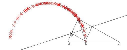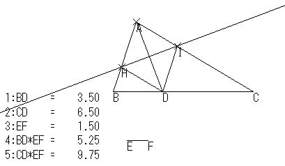 点 D の位置を固定しておいて,点 A を移動し,ΔEDB,ΔFBCが相似になる位置を求めたい。