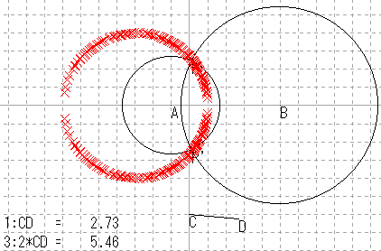 定点 A,B がある。PA : PB = m ; n になる点 P の集合は,線分 AB をm : n にそれぞれ内分,外分する点 C,D を直径とする円になる。