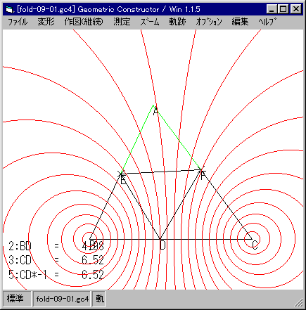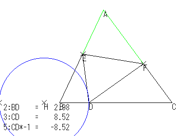 点 D の位置を固定しておいて,点 A を移動し,ΔEDB,ΔFBCが相似になる位置を求めたい。