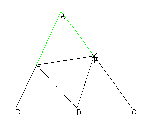 D を動かして,四角形 AEDF を平行四辺形にしたい。点 D はどこにとったらいいか。