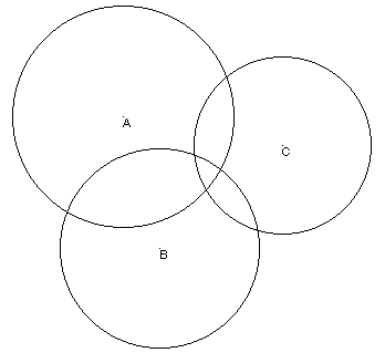 3つの円の位置関係はこのままで,それぞれの2円の交点を通る直線を引いてみる。