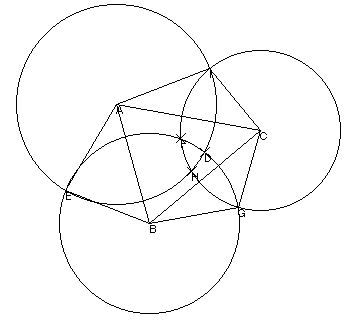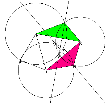 そして,PA,PB,PCの長さが与えられたときに,Pはどこにとったらいいだろうと考える。