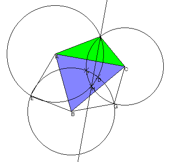それぞれの2つずつの円に注目し,交点を通る直線を引いてみるとそれらの3つの直線が一点で交わることを証明せよ。