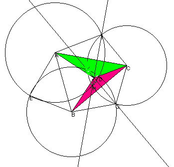 そう,これは,青い色の部分(ΔABC)を底面とし,緑の3つの三角形を側面とした,4面体の展開図です。そして,この緑の3つの側面を次第に持ち上げていって,それらが一致するときに,4面体ができるわけです。