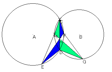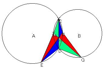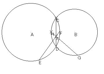 次に,図のように,円A上にE,Fがあり,CDとEFの交点をXとする。