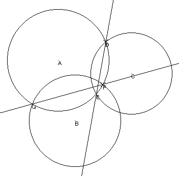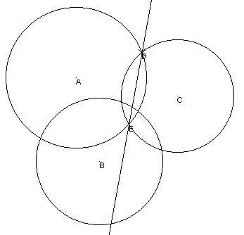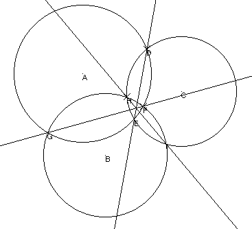 それぞれの2つずつの円に注目し,交点を通る直線を引いてみるとどうなるか。