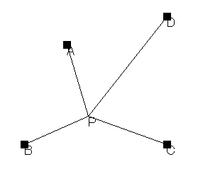 拠点が4つあるとする。どこかに共同の井戸を掘りたい。どこに掘ったらいいか。