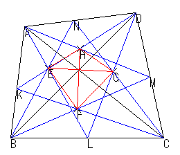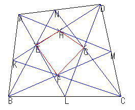 ALとBNの交点をE, BMとCKの交点をG, DKとAMの交点をH として 四角形 EFGHを作る。