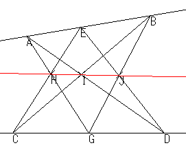 つまり,次の図における3点の共線性。