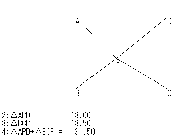 ということになります。ここで,AD,BCの長さや向きを変えると,いろいろな状況が生まれるわけですが,本質的には同じでありながら,元の「4角面和」のときとは異なった探究過程があり得ることになります。