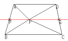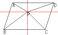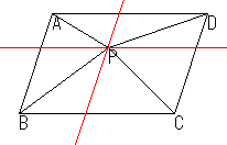 平行四辺形では「内部の(あるいは平面内の)すべての点」で成立する。それに対して,台形では,ある直線上でしか成立しない。