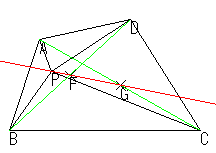 上記のように,「一般の四角形は 0次元(点)」と推測すると,実は正しくない。つまり,やはり直線になる。この直線は,「対角線の中点(2つある)を結んだ直線」である。