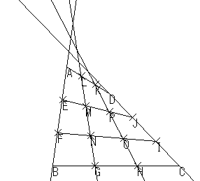 この図が示すように,一般には縦の3つの線分を延長したものは一点では交わらないのである。