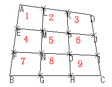 まず,最初は,「2等分」の場合の結果を,「3等分」に応用してみることを考えた。たとえば,