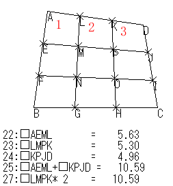 そこで,「3等分の場合」について自分なりに見直してみた。振りかえってみると,ここでの番号の付け方が,上原さんの場合と違って,次のような番号を書いていた。