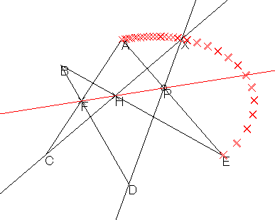 この定理を利用し,元になるはずの「6」点から一つの点を除去した「5点」を基に,「6つ目の点がありうるはずの場所」として,二次曲線を求めることはできないだろうか。